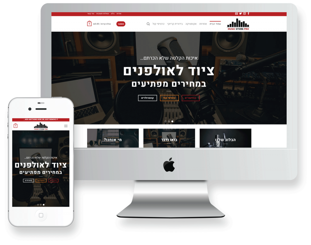 קיבלנו על עצמנו לשדרג את האתר של חברות Music Store. האתר היה בנוי על פלטפורמה ישנה בעל כמות של 300 מוצרים.